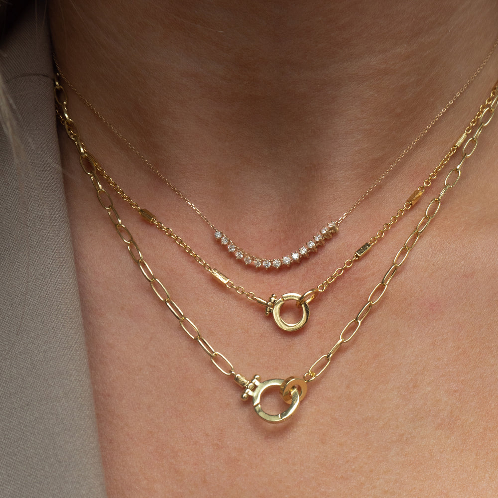 @sarah_norian in the Slater Choker, Rose Marble Coin Necklace, Reed Mini Necklace, Kara Padlock Necklace.