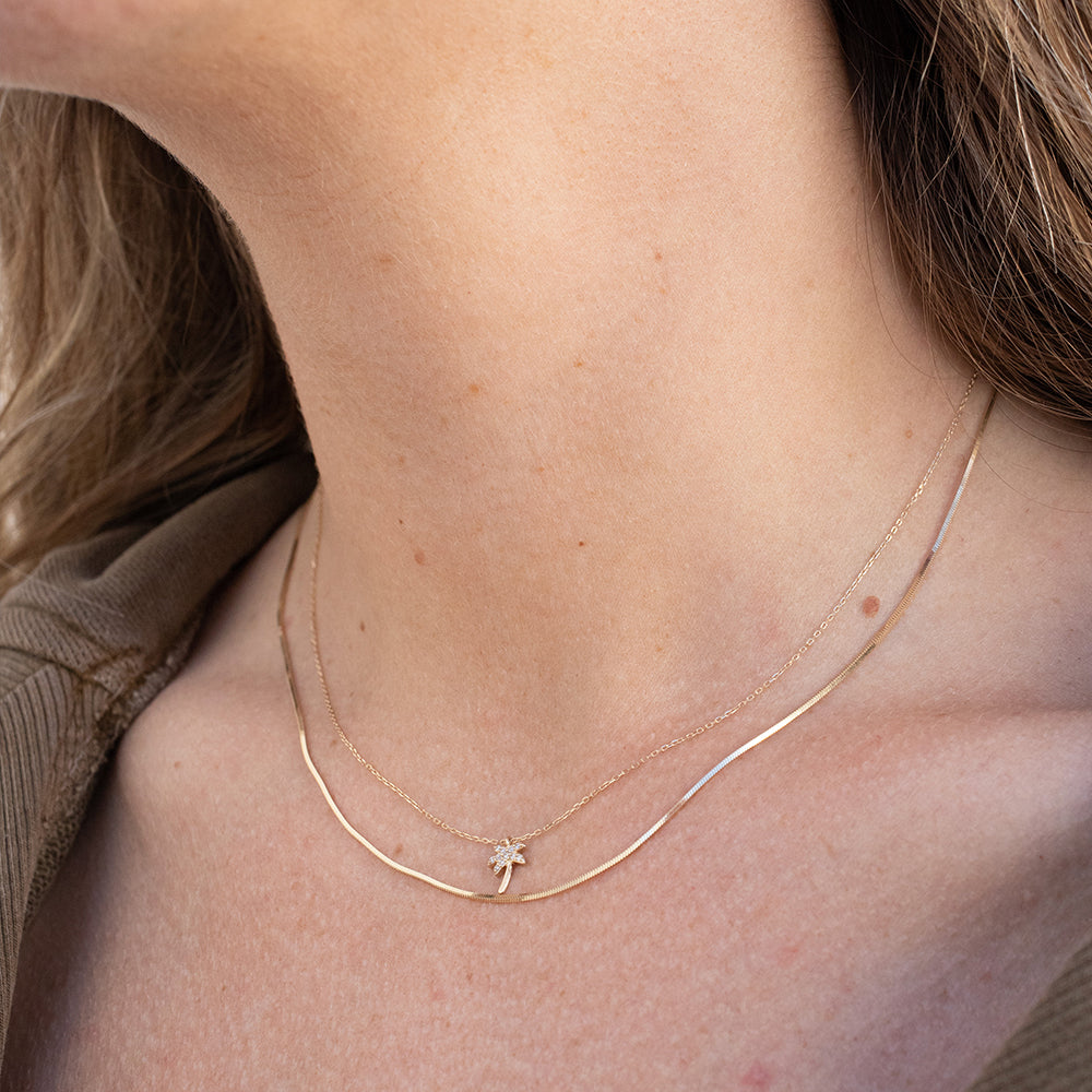 @brookellawrence in the Tatum Necklace, Lou Heart Charm Necklace, Sloane Ring and Laney Ring.