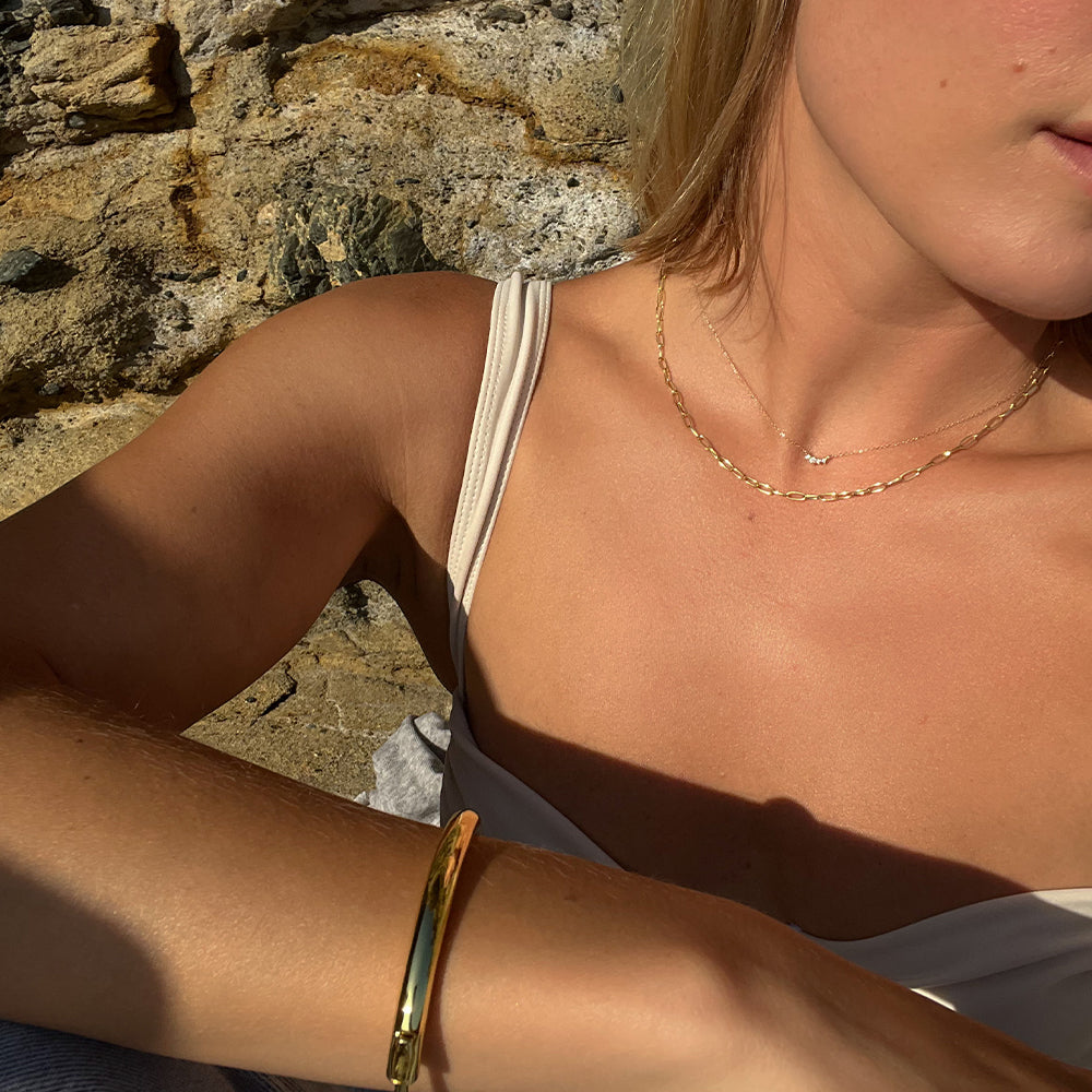 @carterfish in the Reed Huggies, Taum Necklace, Bodhi Mini Necklace, Lou Helium Ring, Sloane Ring and Paseo Cuff.